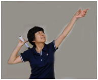 正確で安定した「サーブ」を獲得するためには、各動作に注目して、それぞれの動作の練習を個別に繰り返し、それぞれの動 作が有る程度安定した後に、6つの動作をリズミックにつなぎ合わせるといい。